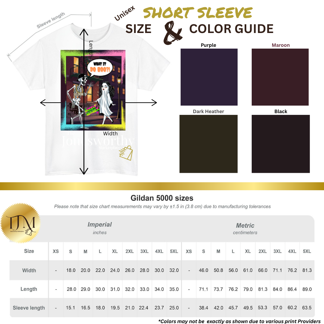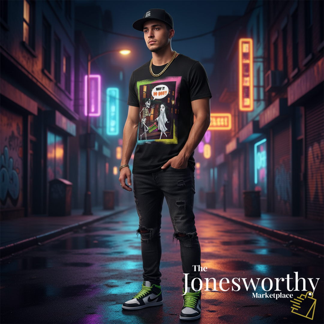 Funny Halloween Graphic Tee | Retro Hip-Hop Skeleton & Ghost | What it Do BOO?! | Graffiti Unisex Heavy Cotton Shirt