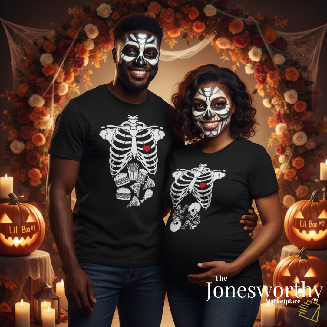 🎃✨ Make your big news unforgettable this Halloween with our Skeleton Pregnancy Announcement & Gender Reveal Tees!
