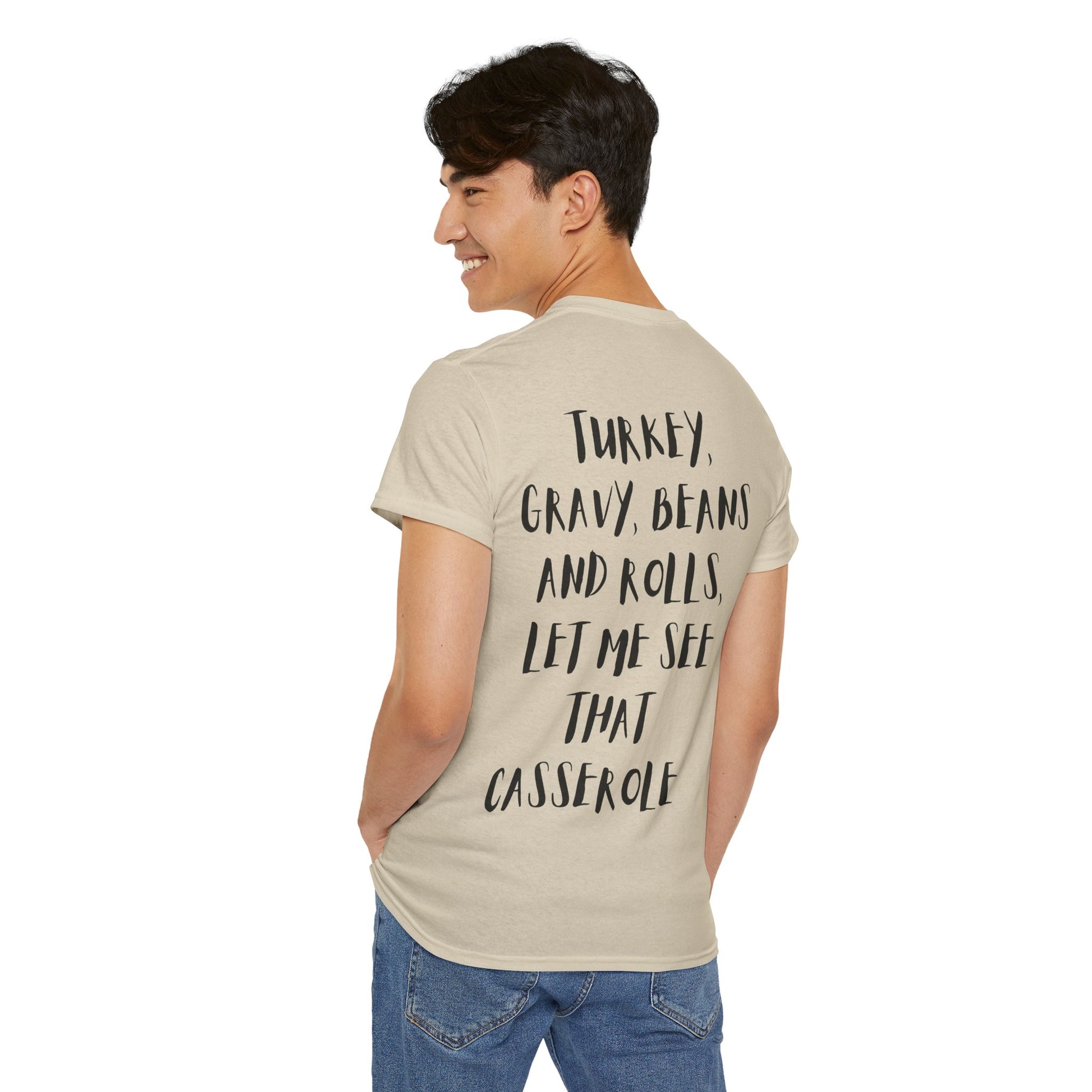 Because Thanksgiving isn’t just about food — it’s about fun, family, and good music. This shirt mixes your love for the beat with your love for the feast. Bring the laughs and let everyone say it with you — Let me see that casserole! 🦃🎶🍽️
