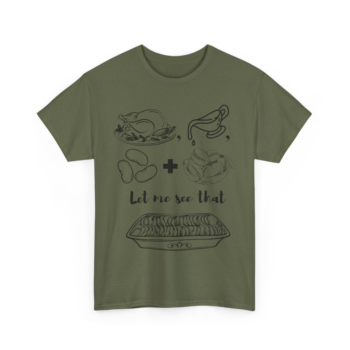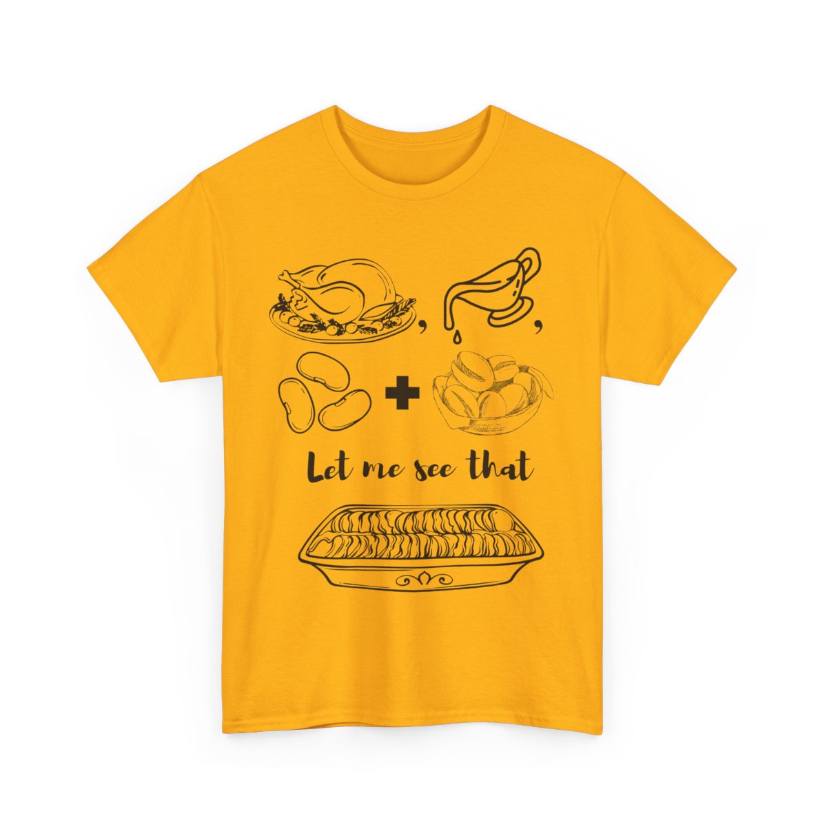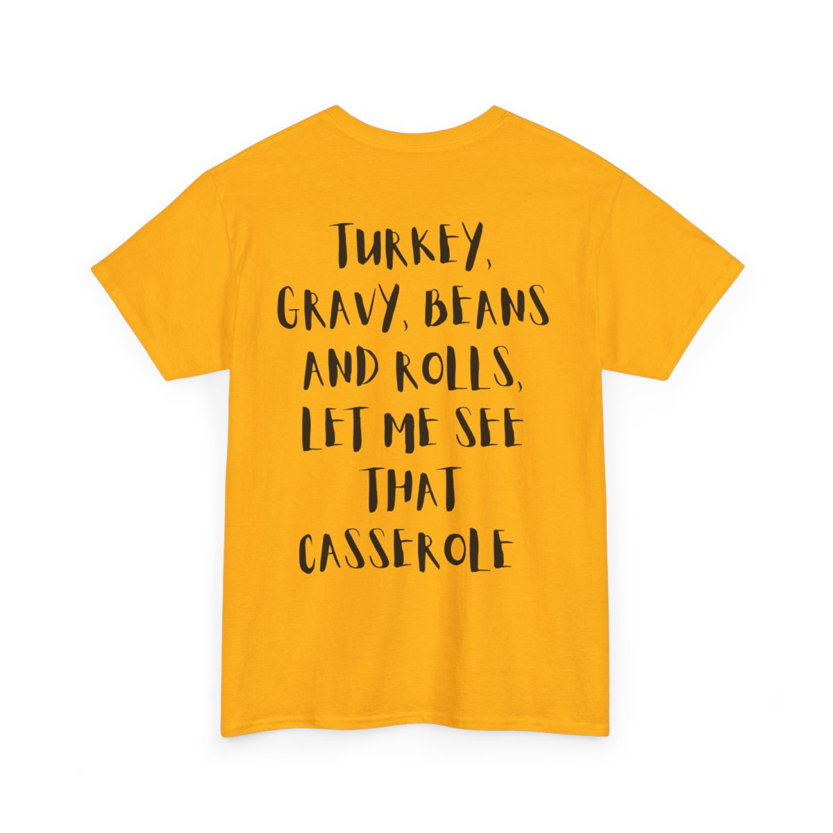 Available in sizes Small through 5XL, in festive, fall-ready colors: Gold, Graphite Heather, Natural, Sand, Military Green, White, Maroon, and Yellow Haze. Whether you’re line dancing in the kitchen or loading up your second plate, this shirt keeps the laughter flowing and the vibes golden.