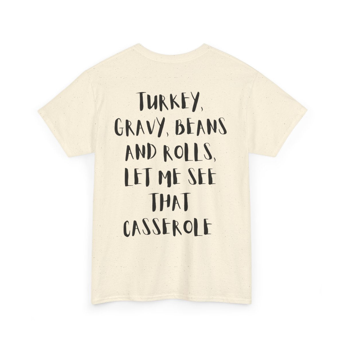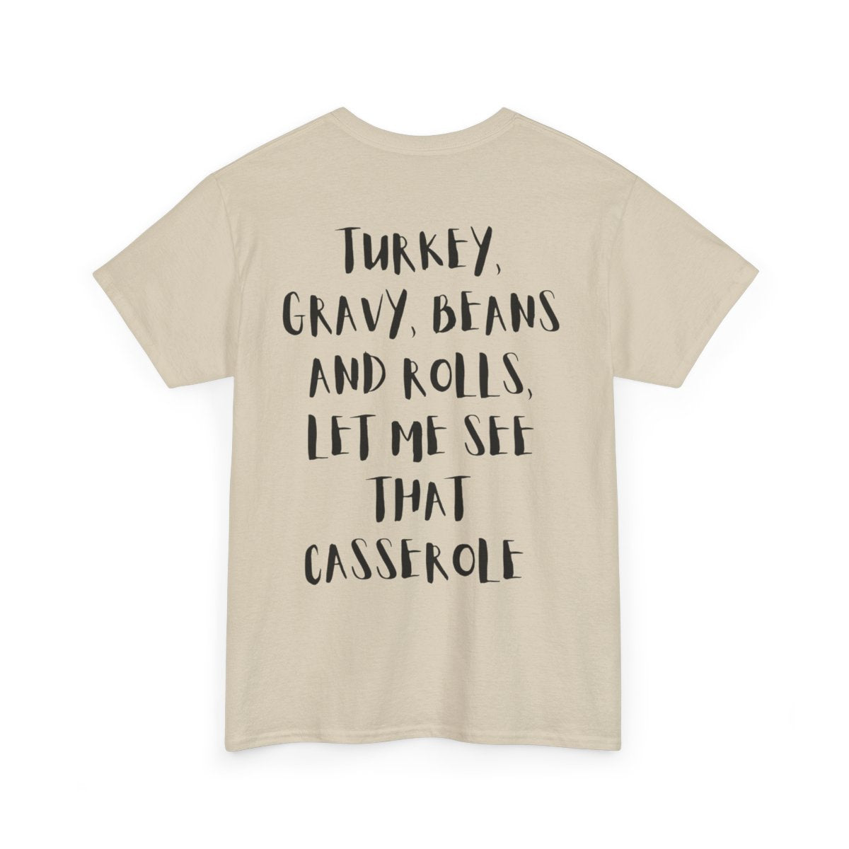 The front features fun icons that make people guess the phrase — perfect for laughter and conversation at every family dinner. The back drops the punchline: “Turkey, Gravy, Beans and Rolls, Let Me See That Casserole.” It’s witty, nostalgic, and ideal for music lovers, foodies, and anyone who lives for the rhythm of Thanksgiving. 🎶🥧🦃