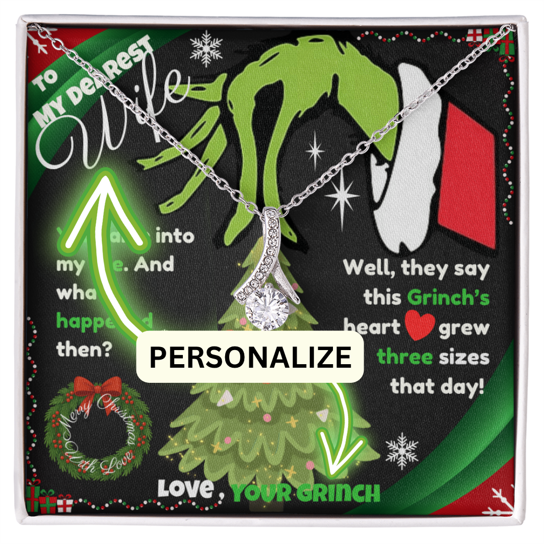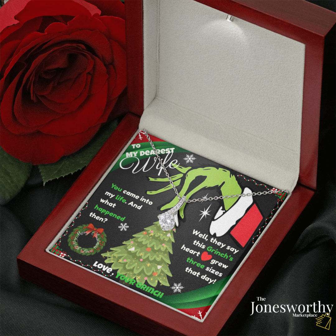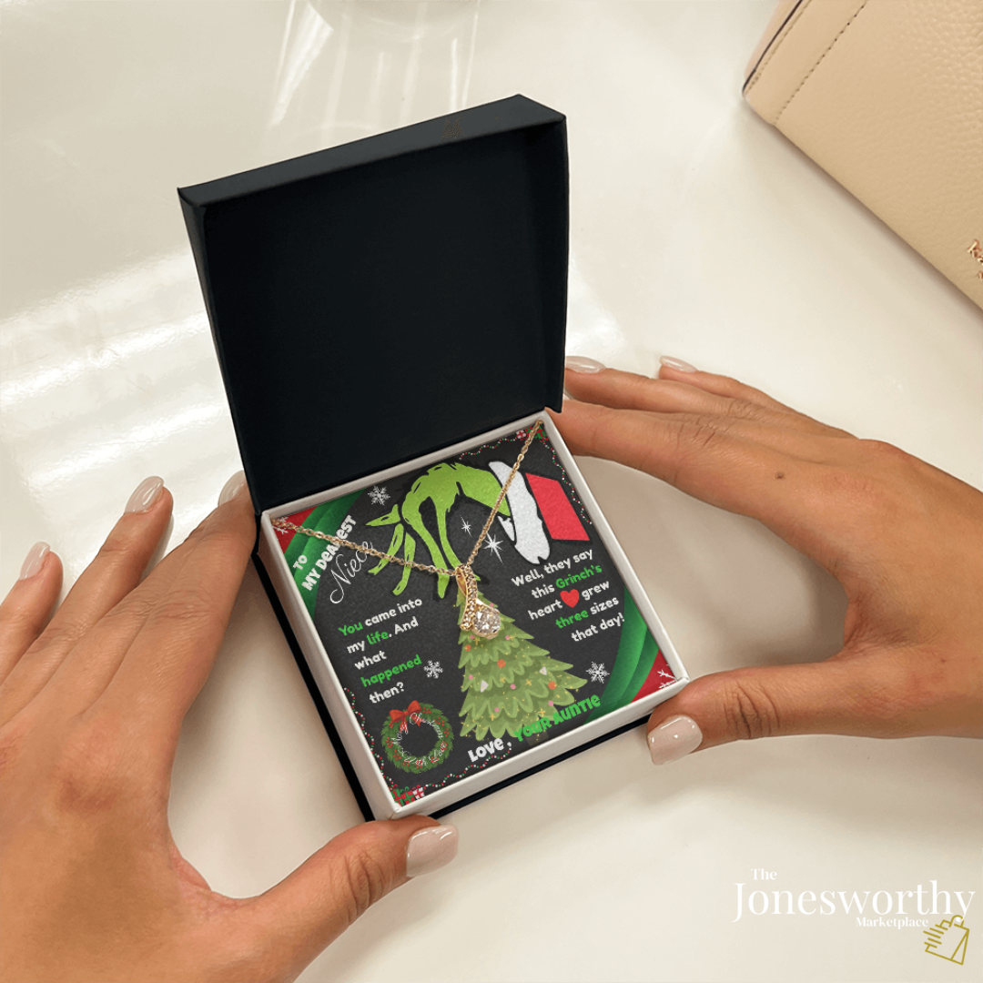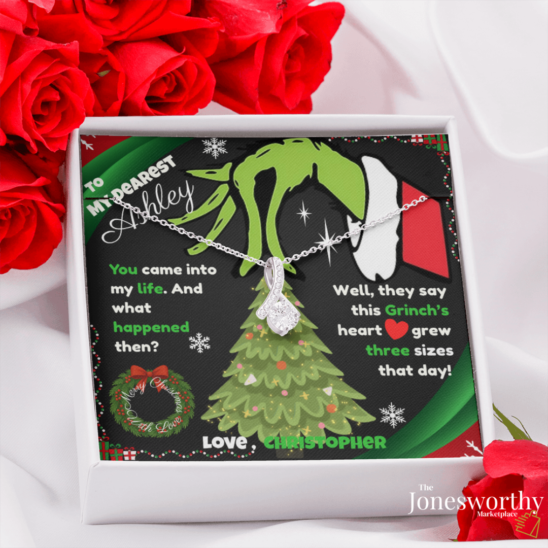 Christmas Necklace for Her – Personalized Alluring Necklace with Custom Message Card – “This Heart Grew Three Sizes” – Gift for Daughter, Sister, Niece, Granddaughter🎄✨