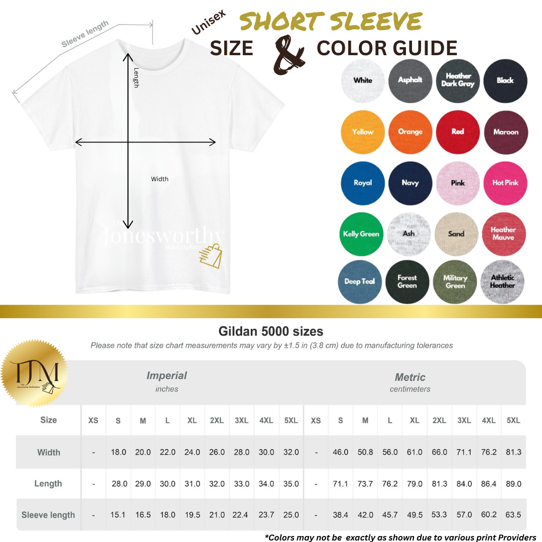 Available in sizes Small through 5XL, this unisex tee comes in a warm, festive palette: Military Green, White, Black, Maroon, Gold, Dark Heather, and Dark Chocolate. Every color pairs perfectly with stretchy pants, cozy cardigans, or your favorite jeans for that “I came for the vibes and the stuffing” energy. 🦃🥧