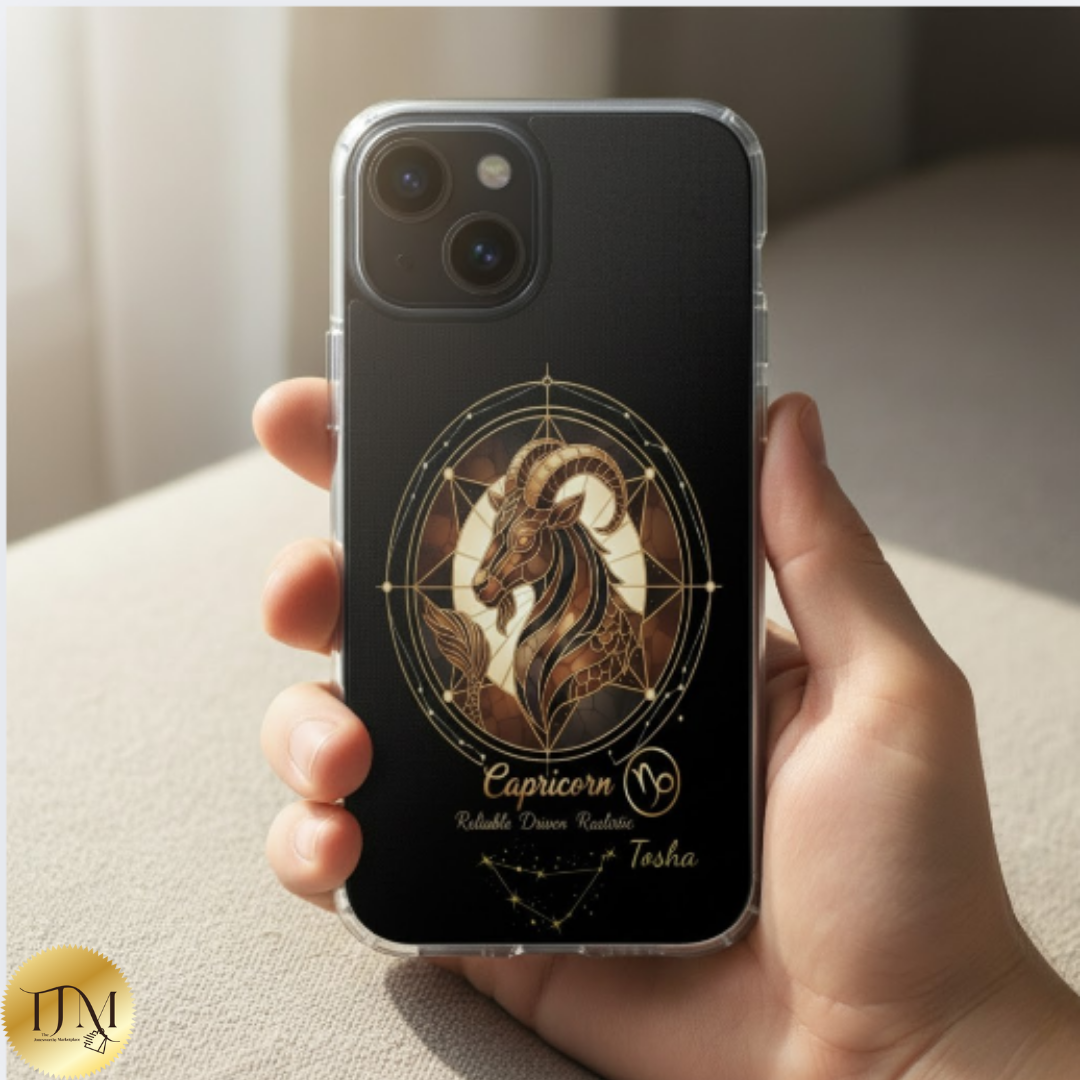 Each case features your zodiac constellation reimagined as a faux stained-glass masterpiece, accented with radiant gold linework, celestial patterns, and your sign’s signature three personality words. Choose from 12 beautifully detailed zodiac designs — each available for personalization with a name or word up to 10 characters, making it the perfect gift for yourself or someone cosmic in your life. 🌌