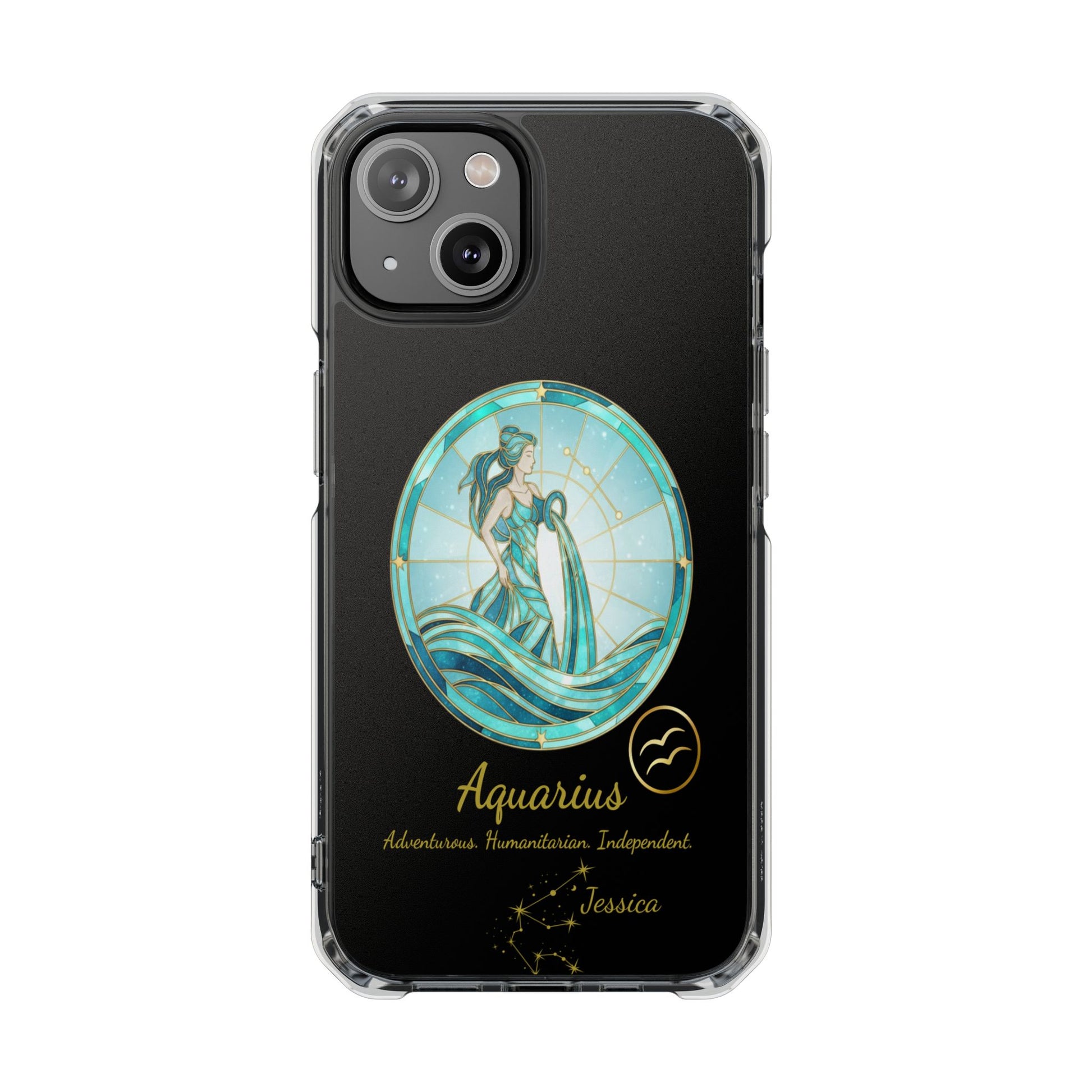 Zodiac iPhone 14 | 14 pro | 14 Pro plus |14 Pro Max Case MagSafe: Faux Stained Glass, Personalized Name