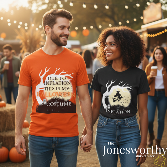 Funny Halloween Shirts | Sweatshirts | Due to Inflation Costume | Inflation, Black or Orange Unisex Tees & Crewnecks